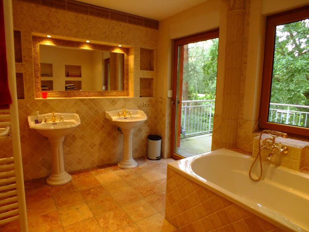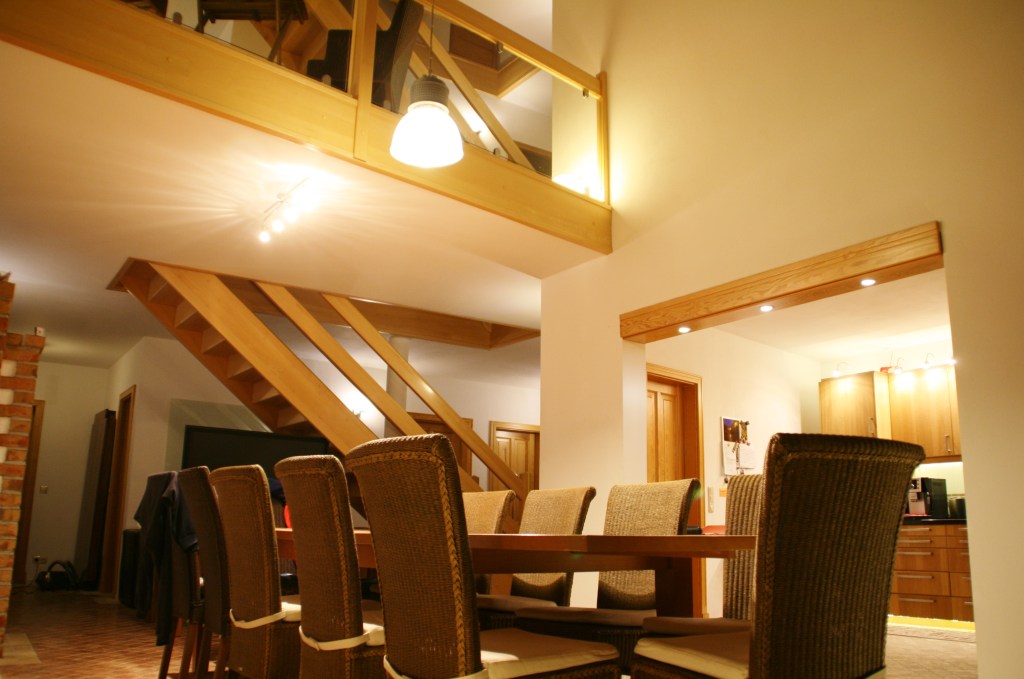 Die Küche, die Wohnhalle, das Kaminzimmer und den Außenbereich nutzt Ihr natürlich auch.
